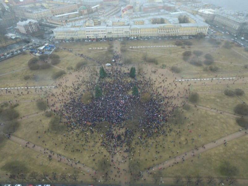 Erano ottomila a Mosca, megalopoli di 20 milioni di abitanti. A San Pietroburgo, abbiano una foto: