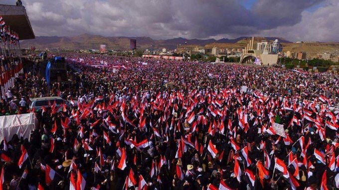 The picture shows yesterday’s rally in Sanaa,Yemen where up to 1 million people.