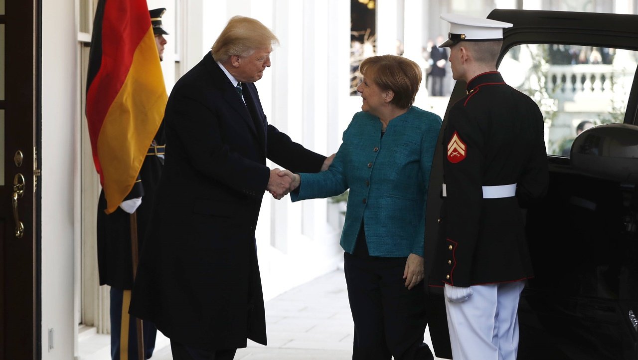 In realtà, ecco come Trump ha accolto la Merkel sulla porta della Casa Bianca