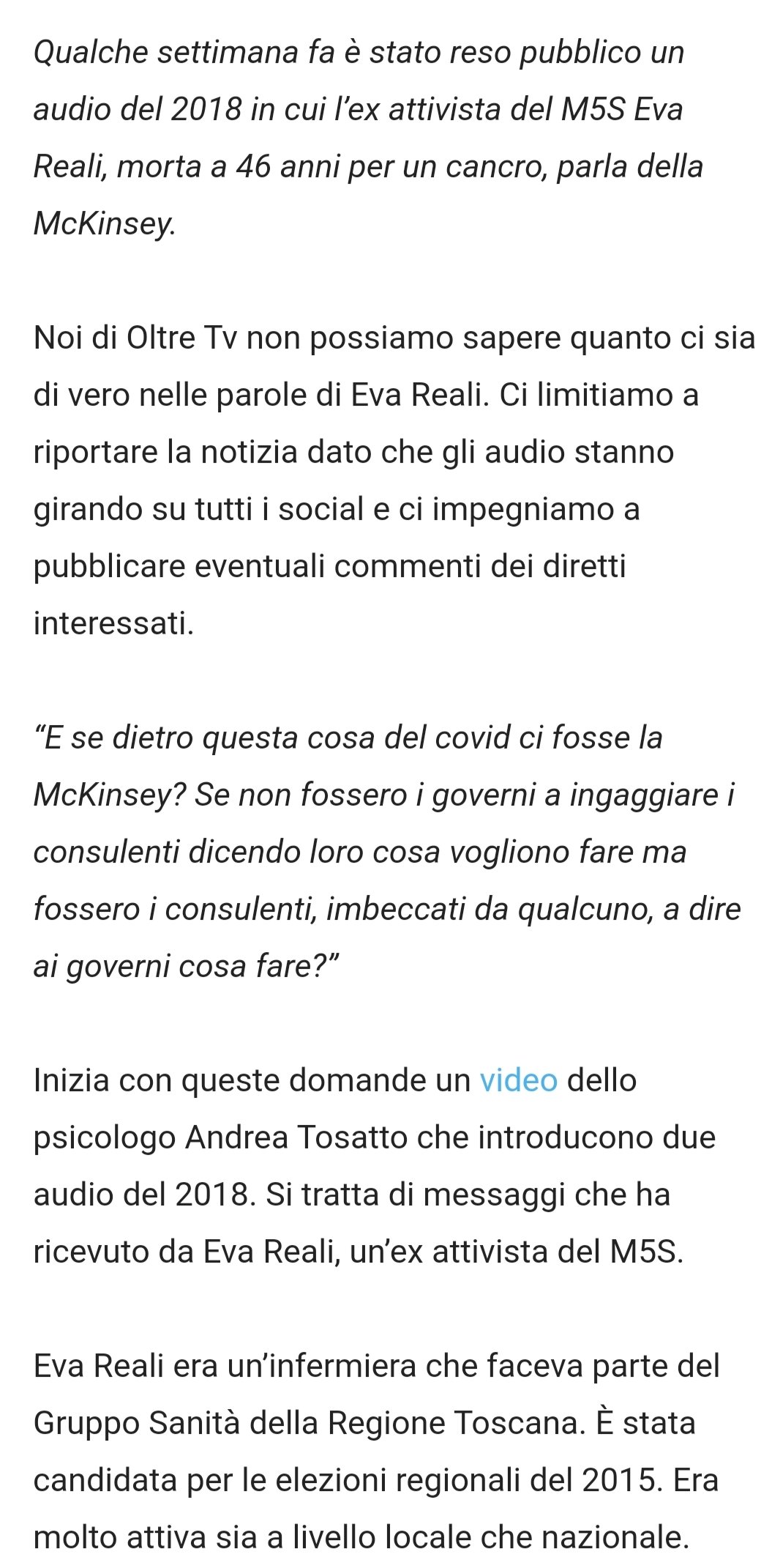 Nell’audio la Reali ha raccontato che, quando era referente al tavolo sanità della Toscana a cavallo tra il 2013 e il 2014, fu contattata “in modo non esattamente pulito” dalla McKinsey un’azienda che, a suo dire, formava i dirigenti dei Paesi europei e asiatici.
