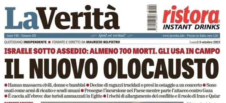 M’è venuto un sospetto: che Olli Schlein è stata messa a capo del PD in modo così artificiale e forzato (voto online, mentre ai seggi hanno votato Bonacini), una palese nullità al disotto dei compiti di segretaria, in vista del genocidio programmato, perché la gente di sinistra di solito stava coi palestinesi e rischiava di sgarrare rispetto alla Narrativa Ufficiale, che deve diventare ogni giorno più spropositata: gli israeliani sono vittime di “un nuovo olocausto”, subisce lo “sterminio”, è minacciata di “annientamento”..….