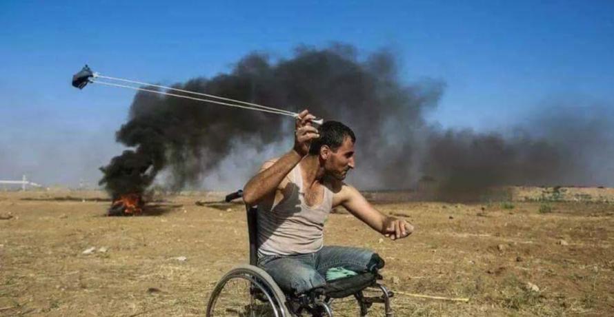 Nella loro orgia di massacro, gli assassini israeliani hanno ucciso anche lui – Perse le gambe nel bombardamento dei giudei del 2014, Fai Abu Salah era una figura commovente e caratteristica nella prima linea dei combattimenti a fionda contro i mitragliatori della canaglia più vile del mondo – che si è abbandonata con gioia maligna a questo pogrom verso inermi, 52 assassinati e 2400 feriti in poche ore. Fai Abu Salah non era certo un pericolo per nessuno. Ma hanno voluto festeggiare così lo spostamento dell’ambasciata Usa in Gerusalemme. Non sanno che per i palestinesi di Gaza, ormai morire è meglio che vivere – a tal punto li hanno ridotti. E cercano la morte: versare il sangue per Al Qudsa è la loro ultima devoozione al glorioso e doloroso titolo, Difensori della Terra Santa, che si sono conquistati e che sarà dall’Altissimo ricompensato. Sono loro i lavoratori dell’ultima ora nella Vigna del Signore.