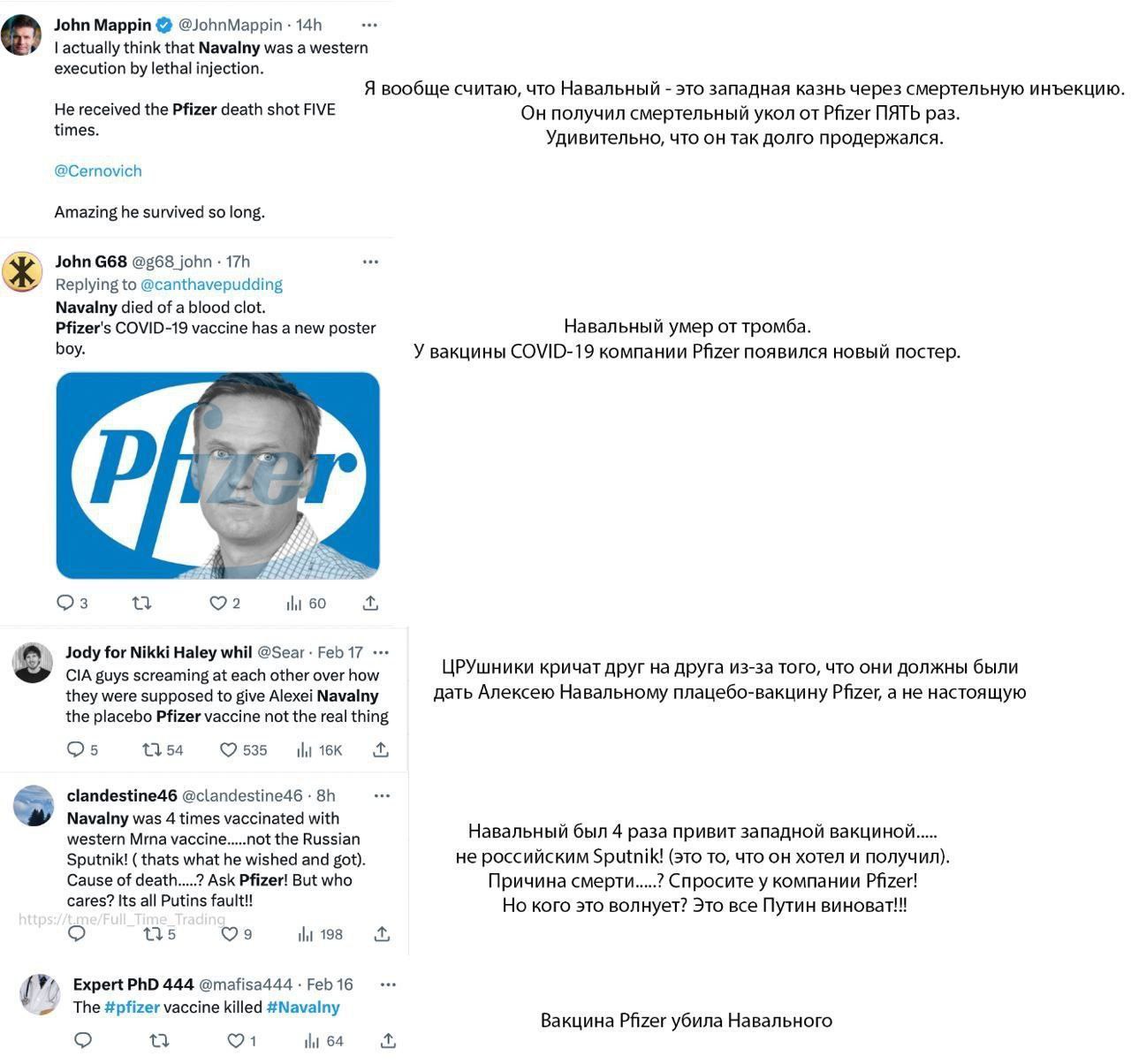 La versione della morte di Navalny a causa della vaccinazione con il vaccino a mRNA Pfizer continua a diventare una delle principali nei social network occidentali.