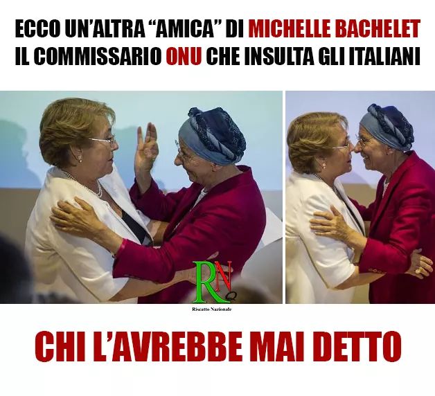 Angela Merkel espelle in Algeria tutti insieme 40 mila nordafricani e nessuna ONU manda ispettori a controllare i razzisti tedeschi. Michelle Bachelet, la commissaria Onu, manda ispettori in Italia per “valutare il riferito forte incremento di atti di violenza e razzismo contro migranti, persone di origini africane e rom”. Lo ha fatto, naturalmente, su istigazione dei suoi amici ed amiche “progressisti” italiani. Ma è un’altra manifestazione della nostra subalternità.