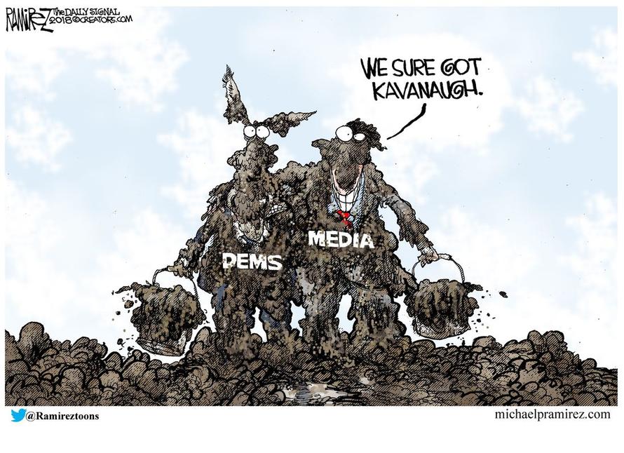 Adesso Nikki se ne va, e in coincidenza con la vittoria di Trump nell’inserire alla Corte Suprema il giudice Brett Kavanaugh: un personaggio con cui i democratici si sono scagliati con tutti i mezzi più bassi, fra cui quello di farlo accusare di un tentato stupro di 36 anni prima dalla Christine Blasey Ford , che non poteva portare il minimo indizio; i democratici, coadiuvati dai media e dal movimento “me too”, al Senato hanno preteso che l’FBI indagasse sui trascorsi sessuali di Kavanaugh ed hanno voluto tenere le note udienze pubbliche – finendo comunque per perdere, e molto male. I media e i democratici sono oggi nella condizione descritta in questa vignetta: