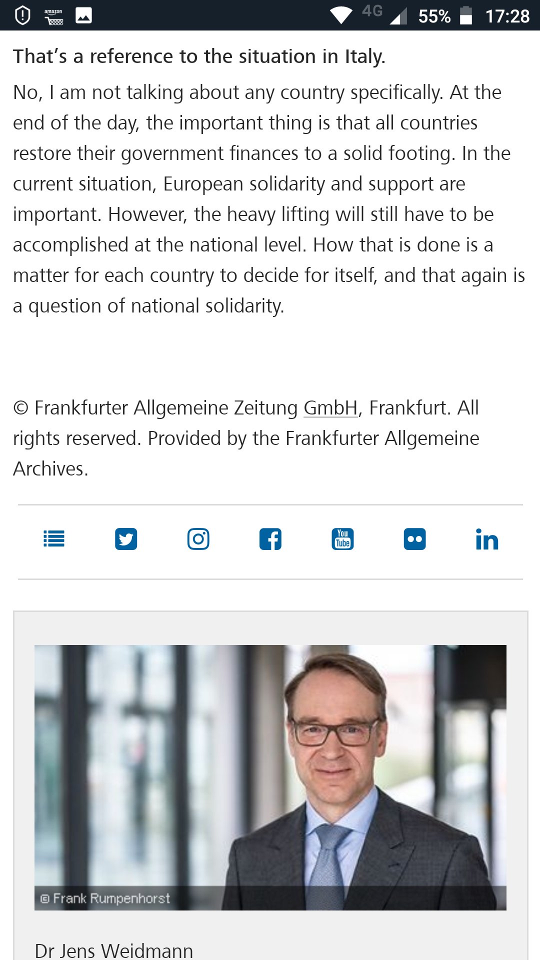 La Germania non è per nulla forte, come dimostra(l’ennesimo!) scandalo e malversazione di Wirecard, la Visa dei tedeschi: il colosso tedesco delle transazioni finanziarie, che ha fatto sparire 1,9 miliardi di euro; letteralmente non sa più dove sono finiti, l’azienda dice che li ha piazzati in Asia per lucrare interessi maggiori, ma in Asia nessuno li ha visti.