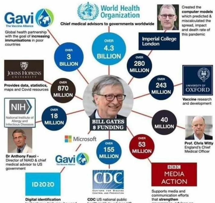 Tutti gli enti “pubblici” che Bill Gates copre d’oro. All’OMS (World Health Organization) dà oltre 4,3 miliardi di dollari.Praricamente la paga più i quanto spende ….