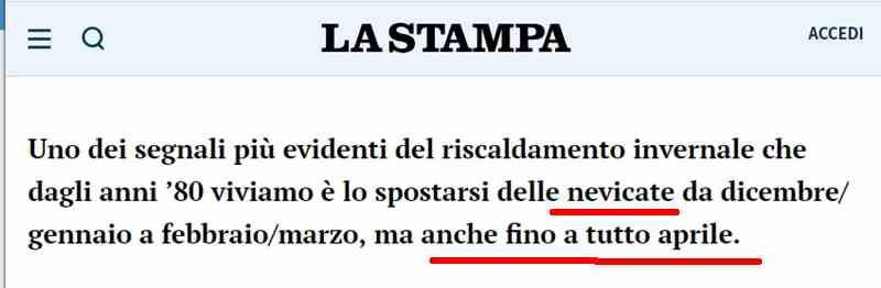 Ma nooo! C’è ilRiscaldamento Globale! Lo afferma la Stampa –