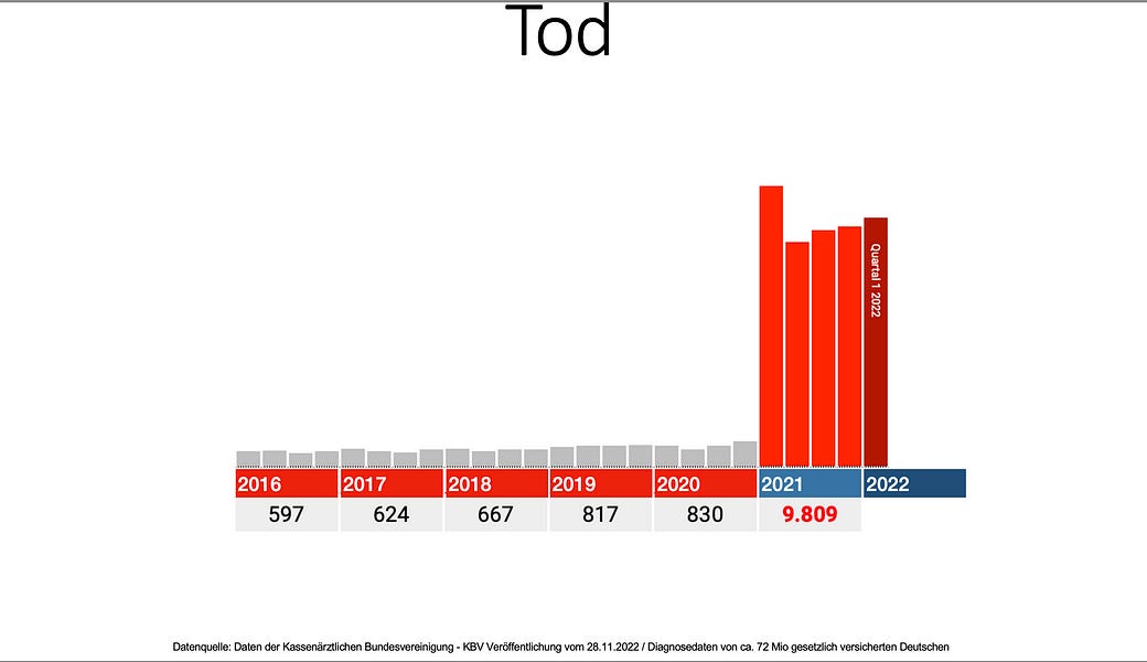 Perché dopo aver esaminato le 90 tabelle fornite dalla KBV, l’analista Tom Lausen è giunto a una conclusione terribile: la vaccinazione Covid è semplicemente un’ecatombe