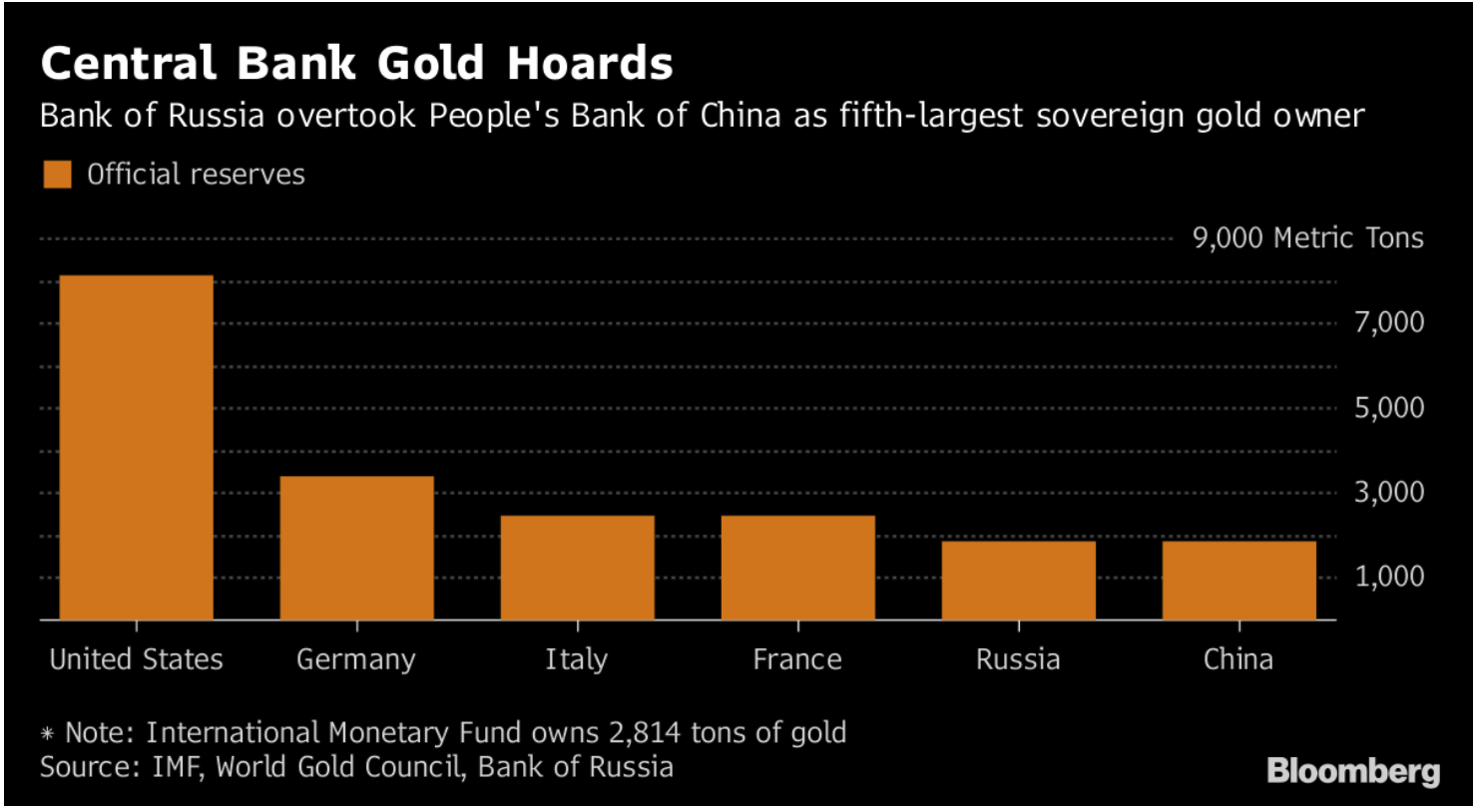 L’Ungheria ha annunciato che rimpatrierà 100 mila once delle sue riserve aure, limitatissime (5 tonnellate) che conserva presso la Banca d’Inghilterra. Budapest segue in ciò Germania, Austria, Olanda e persino il Venezuela: Chavez ha rimpatriato 180 tonnellate nel 2011. Russia, Cina ed anche Turchia continuano ad acquistare oro (Mosca, 20 tonnellate solo a gennaio 2018, quattro volte le riserve ungheresi).