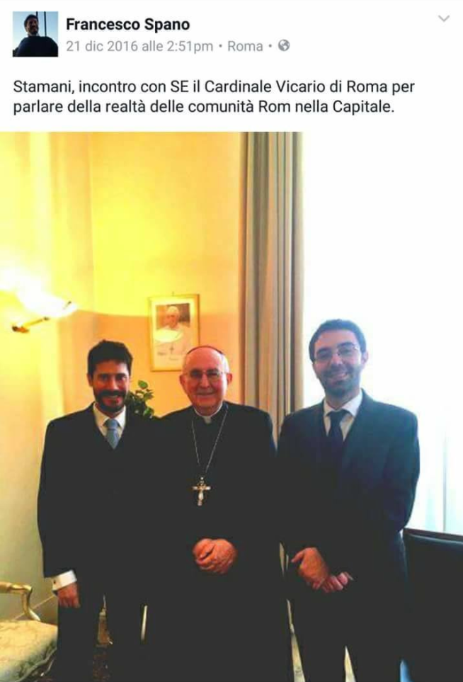 Il profilo è anche punteggiato da foto di lui ricevuto dal cardinale Angelo Scola di Milano, dal cardinal vicario di Roma “per parlare della comunità rom nella capitale. Quella comunità che tanto soffre, coi Casamonica a lottare per la fame e la miseria. …”Un perfetto neocattolico, infatti viene spesso ricevuto da importanti cardinali che non hanno il tempo di ricevere padre Stefano Manell”, mi twitta un amico. Ma sì, cosa vuoi farci. L’oligarchia si permette tutto. I vizi e anche i lussi. Di essere pure cattolica, oggi che regna El Papa.