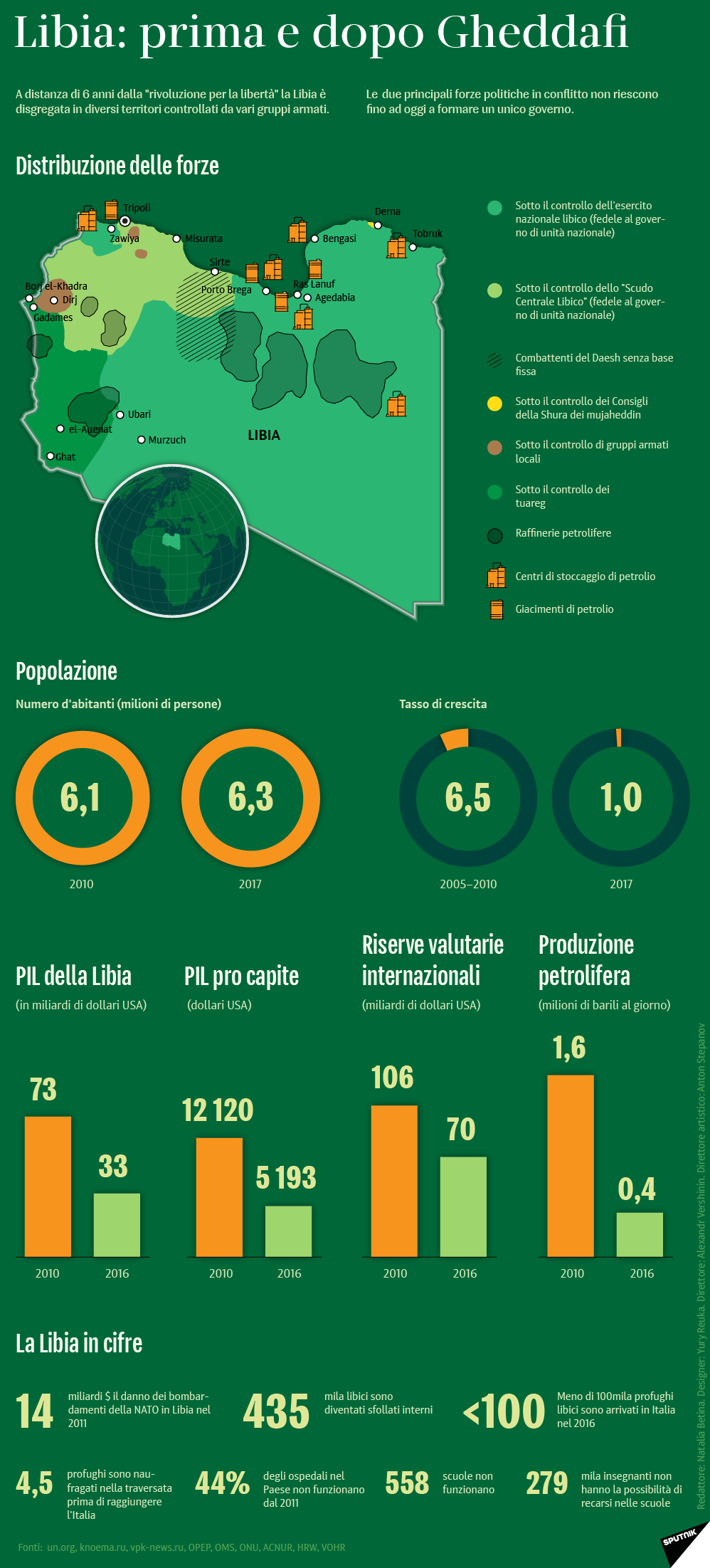 Gli interessi economici dei Paesi occidentali e le immense risorse di petrolio furono le principali cause di quella guerra che segnò l’inizio di un disastro degenerato fino ai giorni nostri. Oggi i riflettori della stampa sono puntati sul dramma dei migranti trattenuti e torturati in Libia, scenario sempre più complesso dove a scontrarsi sono gli interessi dell’Italia e dei suoi “alleati” occidentali. Quali sono le possibili soluzioni della crisi libica? Qual è il ruolo della Russia in questo contesto? Sputnik Italia ha raggiunto per un’intervista Paolo Sensini, storico, analista geopolitico e autore del saggio “Libia. Da colonia italiana a colonia globale”.