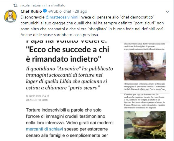 Naturalmente parlano i suoi complici: parteggiando, accendendo più odio politico, ingerendosi nella società, e diffondendo falsità. Ormai sapete che le foto che Avvenire ha pubblicato, sulle presunte torture che gli africani “rimandati indietro” in Libia subirebbero, sono state comprovate false.