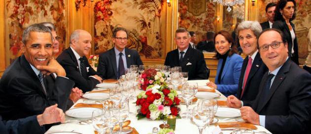 Obama ha benignamente accettato; s’è fatto accompagnare da un modesto convoglio di auto nere, provocando un ingorgo memorabile anche per Parigi, e sedendosi a tavola con John Kerry e Susan Rice.