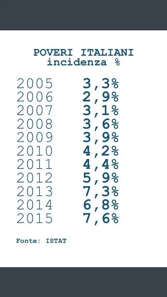 Lo Stato non ha fatto niente per affrontare la più grave depressione economica in corso ormai da quasi dieci anni, peggiore di quella del 1929-39; e voi vi siete lasciati raccontare, italiani, che avrebbero provveduto “i mercati” a risolvere il problema, che non occorreva più alcun intervento pubblico in economia. Quel che ha fatto lo Stato, i partiti, i ministri, gli alti burocrati e i media, è stato di “annunciare la ripresa” che sarebbe venuta da sé: ecco, il FMI o la BCE prevedono un aumento del Pil; ecco, tutti gli altri paesi sono già “usciti dalla recessione”; guardate, gli Stati Uniti sono in ripresa, la marea della crescita che sale, farà salire anche la vostra barchetta. Per dici anni hanno chiamato “ripresa” quello che era un affondare nella depressione, un avvitarsi su sé stessa della crisi del capitalismo terminale.