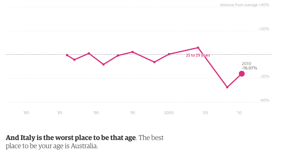 Fate il calcolo: già voi (noi) abbiamo fatto meno figli, avevamo già uno dei più bassi indici di natalità. La metà dei vostri figli, disoccupati al 40%, non genererà; né i pochi che lavorano, con salari microscopici, non genereranno molto meglio. Una generazione italiana sarà sostanzialmente sterile.