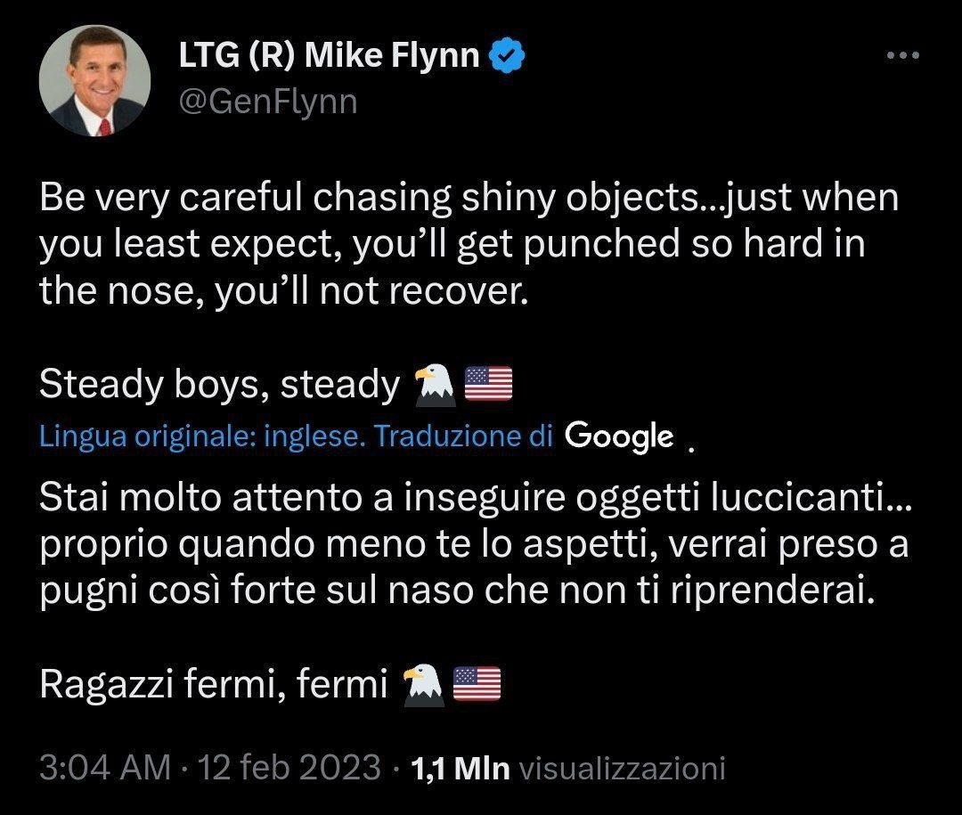 Il tweet del Generale Flynn, fedelissimo di Trump, è decisamente enigmatico. Che ne dite?