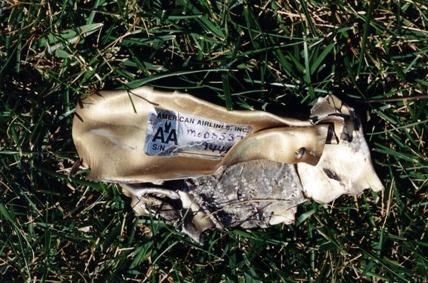 E qui ci dobbiamo dichiarare vinti: sì, la anticomplottista ha ragione. L’aereo aveva lasciato sul posto la carta d’identità., e non ce ne eravamo accorti. L’aveva lasciata lì, sul fresco fraticello, con tanto di scritta AA, American Airlines.