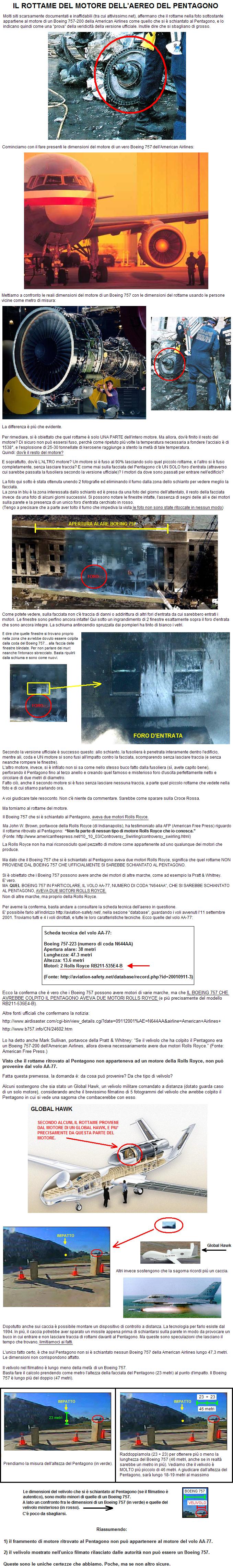 Ah, sì, magari il buco l’ha fatto uno dei motori Rolls-Royce dl Boeing: ovviamente le due turbine sono la parte più pesante di un aereo (il resto è, sostanzialmente, un guscio di alluminio) e nell’urto si sono proiettate contro il muro, producendo il buco circolare. Sorvoliamo sul fatto che i buchi dovrebbero essere due – essendo due i motori in dotazione,domandiamo alla giornalista che Corriere: ha una vaga idea di quanto sia grosso un motore RR del genere?