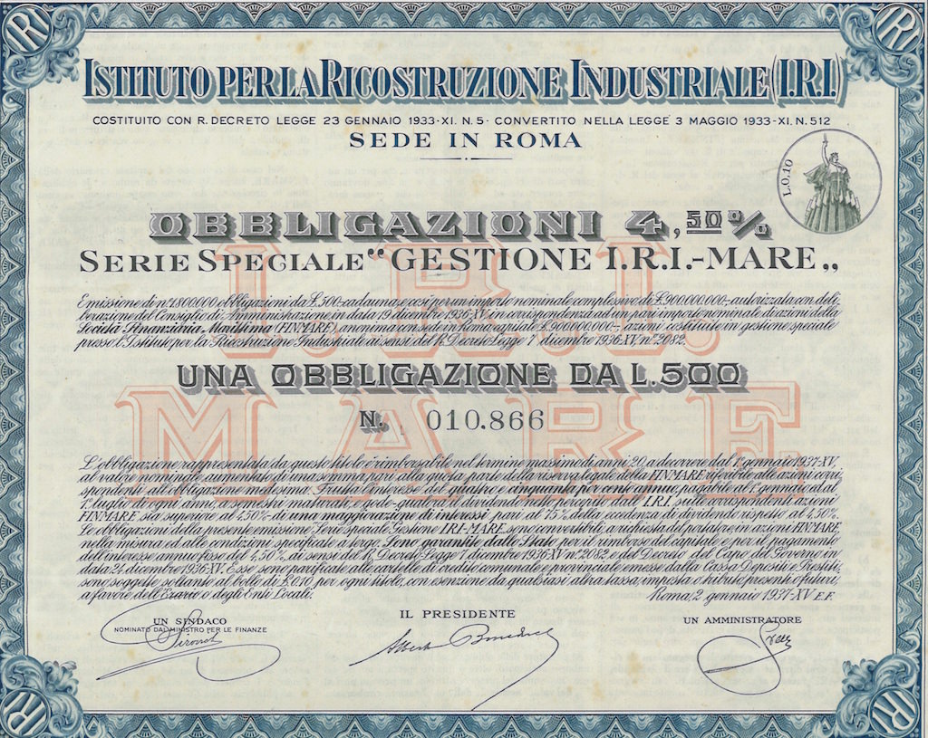 Già: il regime (non a caso Male Assoluto) aveva questa pretesa, che i capitalisti ci mettessero del loro capitale. Oggi che l’IRI è stata svenduta a credito a indebitati esteri, bisogna ricordare il motivo della fascistica pretesa. Consentire le privatizzazioni a capitalisti senza capitale indebitati, significava tornare alla condizione per cui l’IRI dovette essere creato. Una condizione disastrosa che ricorda molto da vicino quella attuale.