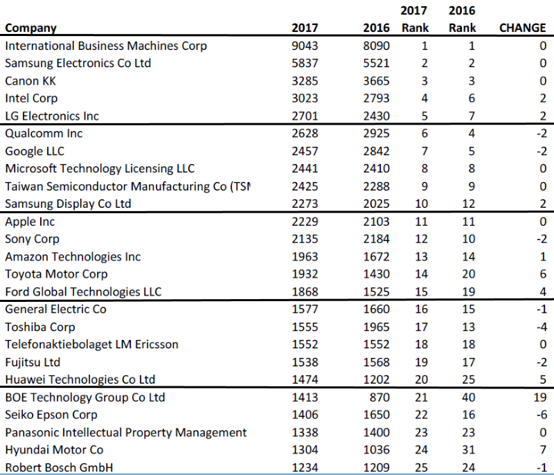 Mody mostra la tabella dei brevetti riconosciuti in USA nel 2017: al primo posto c’è la IBM, al secondo la Samsung coreana; seguono una serqua di imprese giapponesi, cinesi, americane…. Ma un nome tedesco lo troviamo solo nell’ultima colonna. Al disotto dell’unica altra impresa europea che si fa onore, la svedese Ericsson.