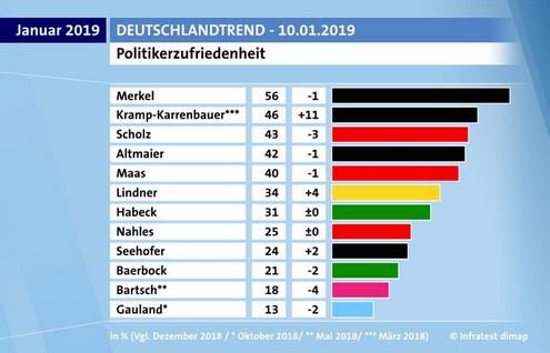 Se poi attendono, i nostri pseudo-governanti, le elezioni di maggio che cambieranno la faccia dell’Europa, è meglio che guardino i sondaggi tedeschi: la Merkel, dopo 14 anni di potere logorante, resta la personalità preferita dai tedeschi. Il 60 per cento di loro la amano e la vogliono ancora. E al secondo posto? guardate, c’è la sua delfina, la KK. Che piace ogni giorno di più.