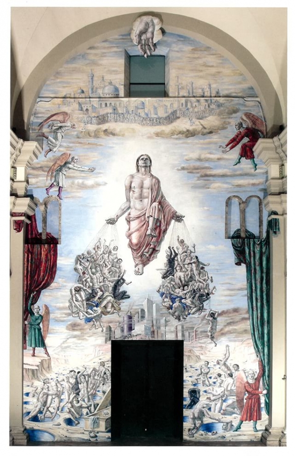 Dalla Nuova Bussola Quotidiana: “:.Uno degli scempi compiuti a Terni da monsignor Vincenzo Paglia negli anni del suo episcopato (2000-2013 è l’enorme affresco che copre tutta la controfacciata della Cattedrale di Terni, dipinto dall’artista argentino Ricardo Cinalli dieci anni fa, sodomita militante, ma che dai media e dai social è stato “riscoperto” in questi giorni. Questa opera, in una cattedrale antica, rifatta nel XVII secolo su progetto del Bernini, costruita su una chiesa precedente la cui origine risale addirittura al VI secolo, è stata piazzata una Resurrezione post-moderna, dominata dalla figura di Cristo che sale al cielo tirandosi dietro due reti cariche di figure umane nude o seminude, con diverse figure di omosessuali e trans.