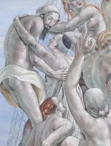 L’impressione iniziale infatti non è quella di trovarsi al cospetto di una resurrezione per la vita; un Giudizio finale dove Gesù porta in Cielo gli uomini; tutt’altro; di primo acchito sembra più una rappresentazione dell’Inferno dantesco che una narrazione profetica dell’Ultimo giorno. Nulla di etereo, sereno, sublime, foriero di pace e serenità emerge dal “disegno”; le scene, al contrario, mostrano volti in preda ad emozioni forti, quasi eccitazioni sessuali, coito o quant’altro e sebbene vi sia stato, dichiaratamente ammesso, il residuo timore di non rappresentare una copula, forse l’intento di tratteggiarne i “dintorni” sembra palese.