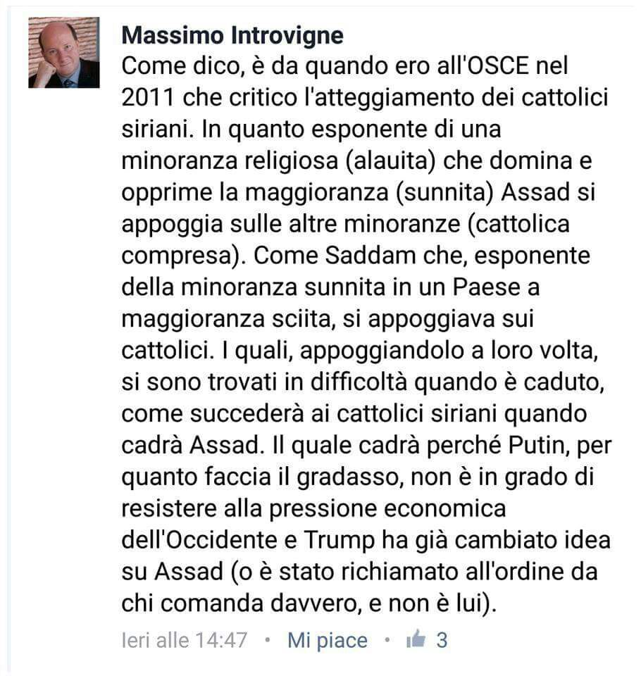 Pubblico questo appunto del fondatore di Alleanza Cattolica perché istruttivo della mentalità che si acquista lavorando per organizzazioni sovrannazionali. Il Nostro ha avuto un periodo all’OSCE, Organizzazione per la Sicurezza e Cooperazione Europea (che si dichiara “impegnata a garantire la pace, la democrazia e la stabilità a oltre un miliardo di persone”), che evidentemente è stata per lui un’esperienza centrale, indelebile.