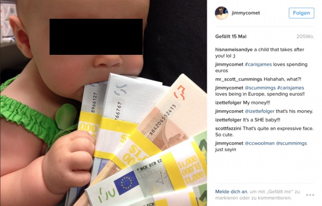 Sul suo conto Istagram, Alefantis – che qui si firma jimmycomet – posta foto come questa (o le postava, oggi ha chiuso):