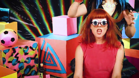 Nella pizzeria di Alefantis, si esibiscono gruppi pop. Uno si chiama “Sex Stain” (macchia di sesso). Si guardi la foto del gruppo che si esibisce, in una performance alla Comet il 15 settembre scorso. Il simbolo sulla sinistra della cantante, a forma di piramide o triangolo blu sul grosso dado: