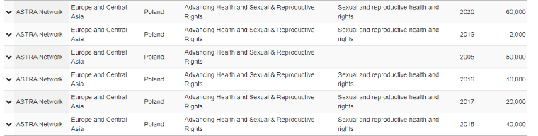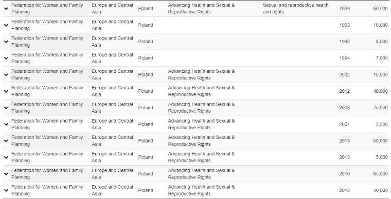 International Planned Parenthood Federation European Network , che ha ricevuto 400mila dollari dalla fondazione di Soros, Il Comitato polacco di Helsinki , che solo nel 2018 ha ricevuto 1,4 milioni di dollari dalle Open Society Foundation: la Stefan Batory Foundation è direttamente l’organizzazione di Soros in Polonia.