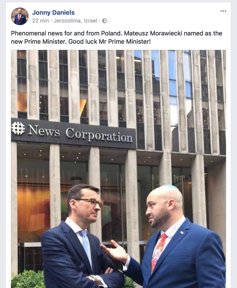 Questo personaggio, lui sì di estrema destra (ma ebraica, quindi kosher ) ha altissime entrature nel governo: organizza a casa propria a Varsavia “pranzi del shabbat” con ministri polacchi e ministri israeliani