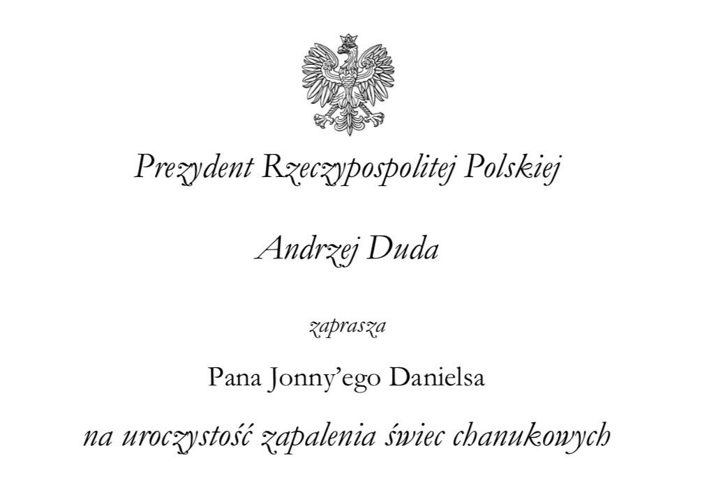 - E’ invitato in pompa magna dal presidente della Repubblica, Andrzej Duda (d’accordo, sposato con una Agata Kornhauser, of Jewish descent..).
