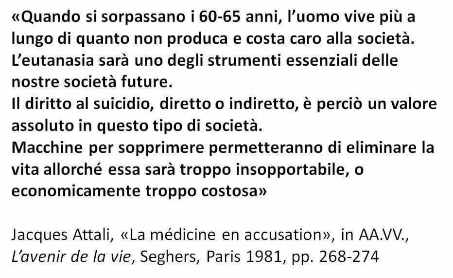 « Ci sono solo due modi per evitare un mondo di dieci miliardi di persone. O i tassi di natalità adesso scendono velocemente, oppure debbono salire i tassi di mortalità. Non c’è altro modo. Ci sono, ovviamente, tanti modi per far salire i tassi di mortalità. Nell’epoca termonucleare si può fare in maniera molto veloce e decisiva. Carestie ed epidemie sono gli antichi modi in cui la natura controlla la crescita demografica, e nessuno delle due è scomparsa dalla scena… »