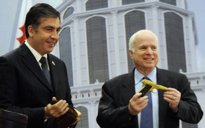 Ormai molti blog hanno rilanciato l’informazione che il sito Aurora titola così: “McCain e Saakashvili complottavano per abbattere un aereo in Siria”. Saakasvili, l’ex presidente della Georgia, autore dell’attacco alle minoranze russofone di Ossezia del Sud ed Inguscezia , nel 2008, è stato oggi nominato da Poroscenko governatore di Odessa. Il governo georgiano di oggi lo ricerca per truffe, frodi, corruzioni varie.