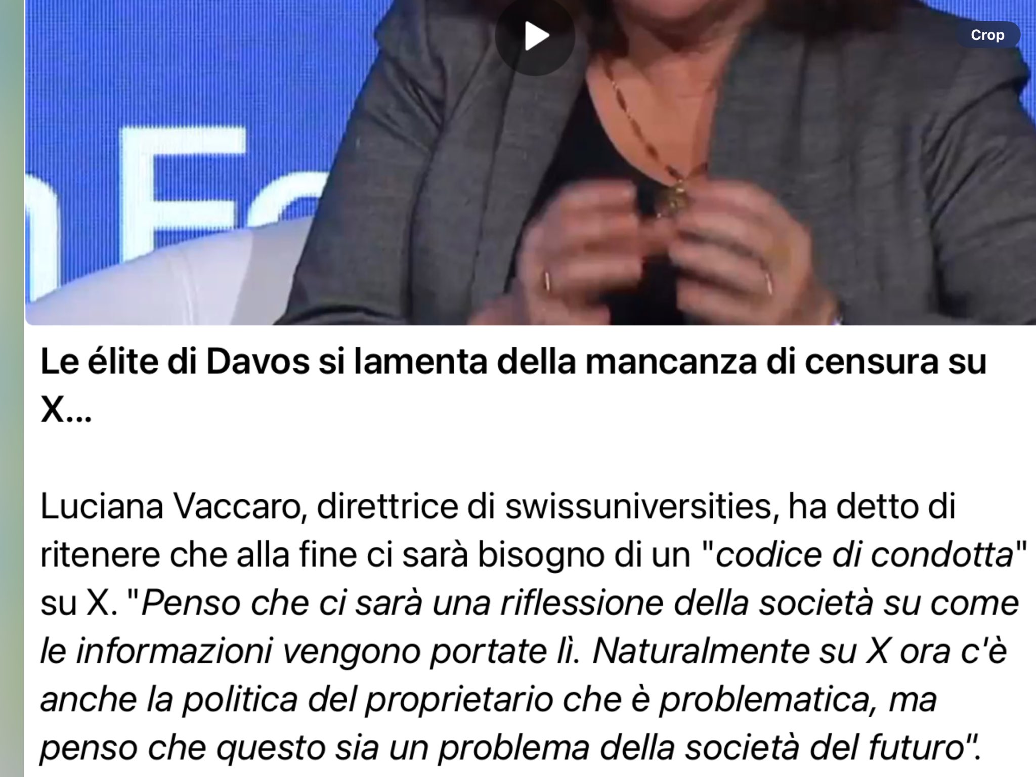 Li Qiang (https://it.m.wikipedia.org/wiki/Li_Qiang), Premier di quella Cina che inaugura tre nuove centrali a carbone a settimana, ha affermato dal palco del WEF24 che bisogna attuare l’Agenda 2030 ma differenziata (ovvero la Cina se ne infischia mentre noi invece dobbiamo farla).
