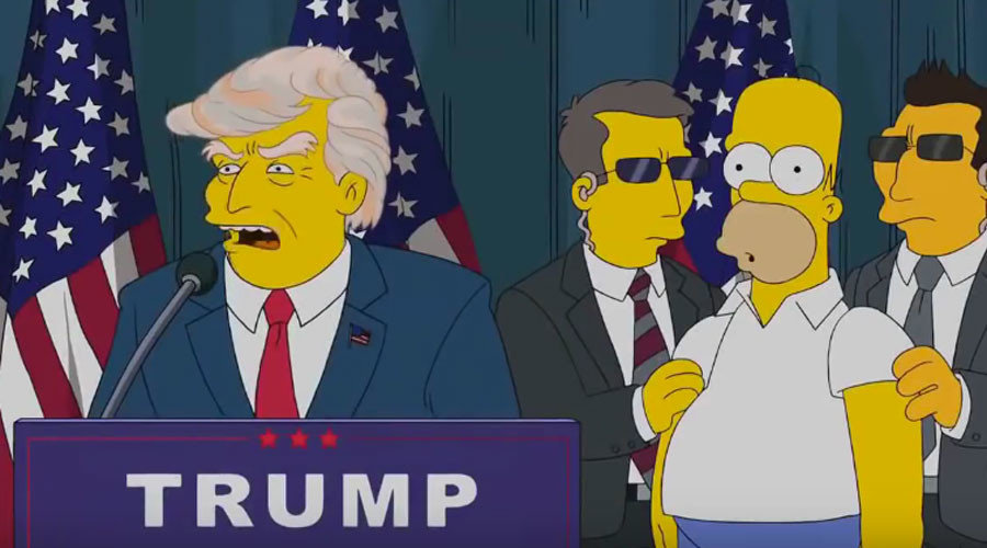 (Un lettore mi avverte che l’episodio di Trump è del 2015, non del 200o. La fonte è qui: http://www.bufale.net/home/bufala-i-simpsons-e-donald-trump-nel-2000-bufale-net/)