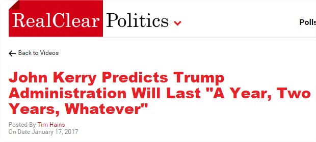 John Kerry a Davos ha profetizzato che l’Amministrazione Trump durerà “uno, due anni”.