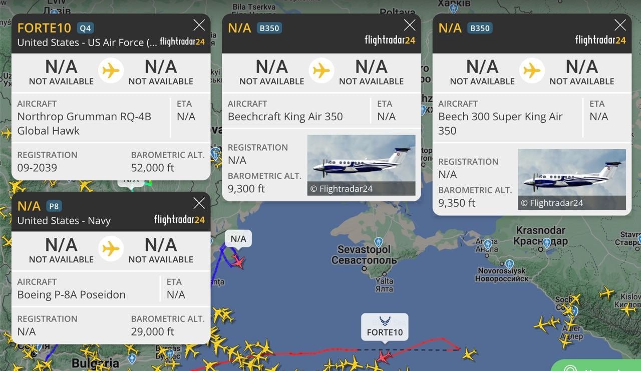 Anche a Pasqua non si ferma l’attività di ricognizione NATO sul Mar Nero. Quattro aerei da ricognizione dei paesi membri della NATO sono stati visualizzati su Flightradar24 lungo il confine russo. Tra questi l’immancabile Global Hawk RQ-4B FORTE10 partito da Sigonella.