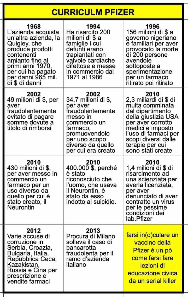 Ai Negazionisti, che si fidano del vaccino e di Pfizer: