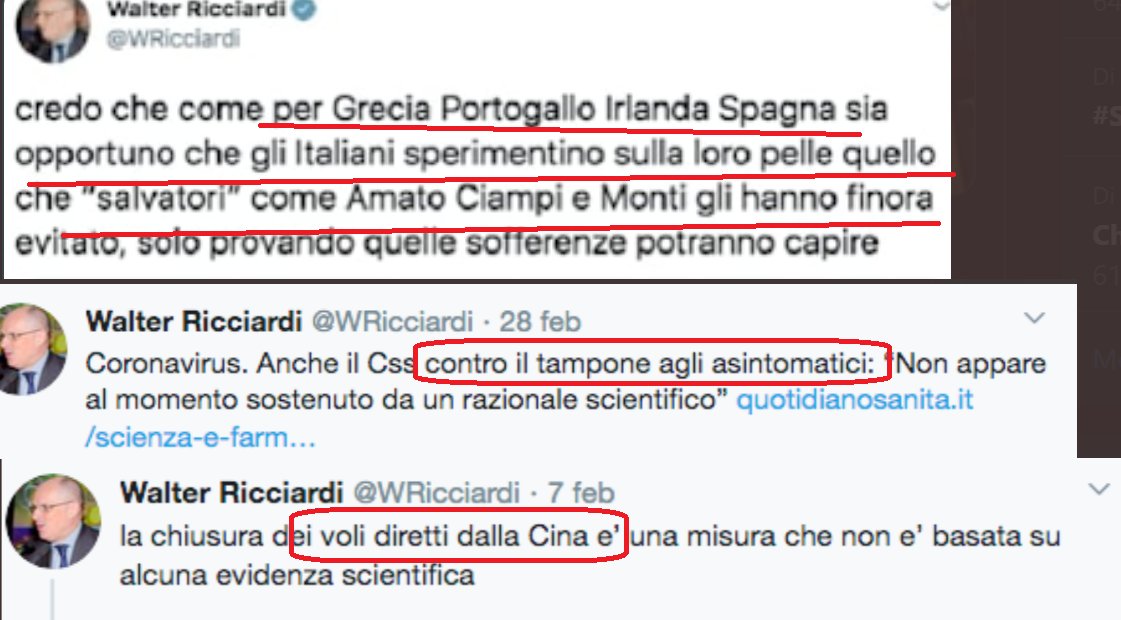 Ricciardi è l’ex presidente dell’Istituto superiore di Sanità, ed oggi è consigliere scientifico del ministro della Salute per i rapporti con le istituzioni sanitarie per l’emergenza Covid.
