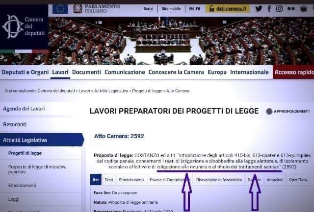 E se passa la legge Costanzo, può essere perseguito penalmente per il REATO di “istigazione alla rinuncia e al rifiuto dei trattamenti sanitari”.