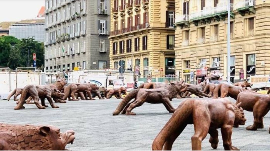 Poiché i nuovo “oggetti artistici” esibiti nelle piazze sono – comunque – estetici, e quindi “significano”, ecco che messaggio mandano ai napoletani: che il branco satanico è stato liberato in città , per volere delle autorità, e vi sta minacciando con le sue zanne di bava infetta.