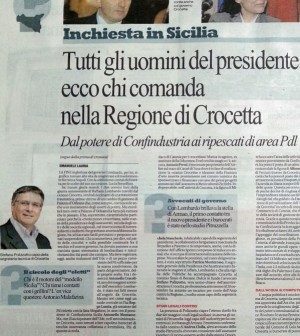 Qui, la cosa comica è che l’arresto non sia stato esteso a “Rosario Crocetta, ex governatore della Regione Sicilia”. E’ infatti Crocetta che immediatamente arrivato alla poltrona nomina l’avvocato Polizzotto (mica ingegnere: avvocato, e dello Studio Pitruzzella, “già in auge durante la presidenza Cuffaro”), Capo della Segreteria Tecnica del Presidente della Regione siciliana, facente parte dell’Ufficio di Gabinetto del Presidente, posto alle dipendenze del Capo di Gabinetto e con le funzioni di istruzione degli atti amministrativi di competenza del Presidente, nonché di predisposizione delle risposte agli atti parlamentati di controllo e di indirizzo”. ![]()