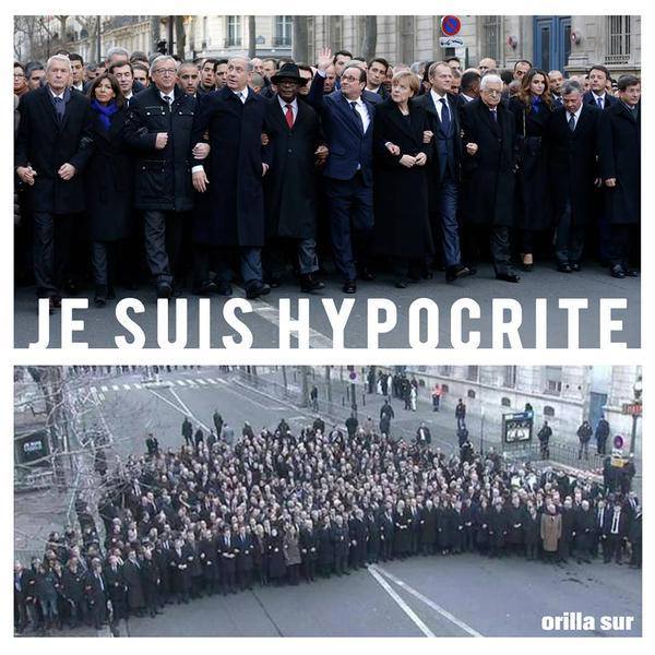 Netanyahu era coi capi di stato e di governo alla manifestazione di Parigi per la strage di Charlie Hebdo: Hollande non l’aveva invitato, non ce lo voleva, c’era venuto lui a forza, stava in prima fila.