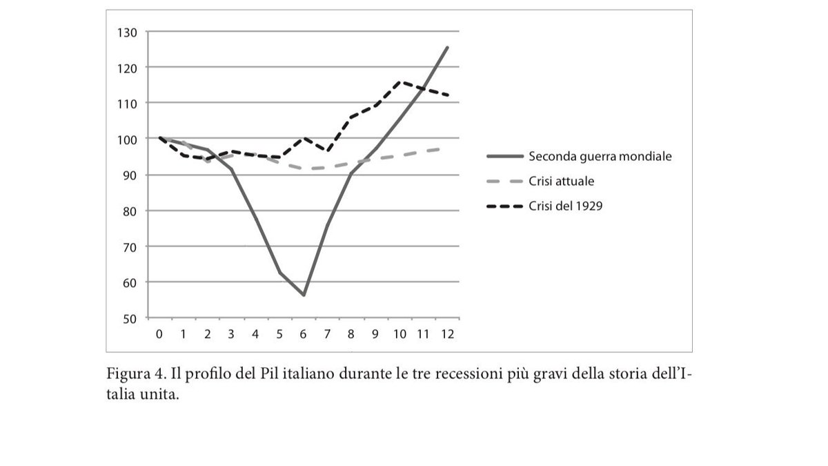 sapete che l’Italia s’è economicamente rialzata in piedi più rapidamente dopo la prima e la seconda guerra mondioale, che dopo la crisi del 2008. Lo dimostra uno studio di Gennaro Zezza, economista a Cassino.
