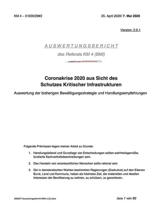L’autenticità del documento è confermata al Ministero federale dell’Interno, perché in un comunicato deplora che: “Un dipendente del ministero federale dell’interno ha pubblicato la sua opinione critica privata sulla gestione della crisi della corona del governo federale usando la carta intestata BMI e i canali di comunicazione ufficiali. La redazione è stata effettuata con la partecipazione di terzi al di fuori del ministero (…) Non è accettabile e non compatibile con gli obblighi generali nel servizio pubblico che le opinioni private siano scritte utilizzando simboli ufficiali, ad esempio per la carta intestata ufficiale e reso disponibile al pubblico”.