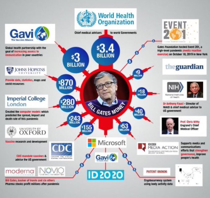 “Impongono vaccini in tutto il mondo e le aziende che li producono – Gates è, in molte di esse, il principale azionista”.