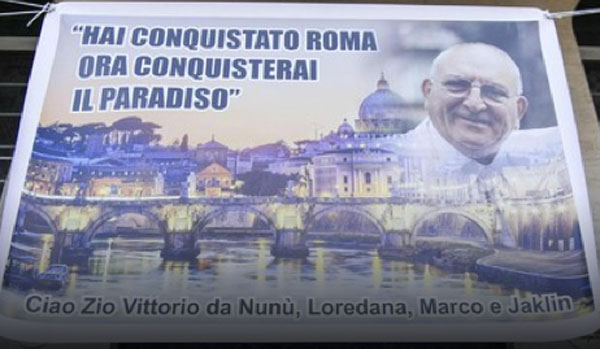 “Hai conquistato Roma ora conquisterai il paradiso” recita un manifesto all’entrata della chiesa. Il suo volto in primissimo piano, vestito di bianco e con il crocifisso al collo, il Colosseo e la Cupola di San Pietro sullo sfondo, e la scritta “Re di Roma” a caratteri scatolati per omaggiare un pezzo da Novanta del clan che nella Capitale gestisce il racket delle estorsioni e dell’usura nella periferia sud est di Roma. Un funerale in cui la parola d’ordine sembra essere una sola: mettere in scena tutto lo sfarzo possibile. E infatti il feretro del boss Casamonica viene trascinato dalla carrozza per le strade della capitale, quasi fosse un capo di Stato, mentre un elicottero lancia petali rossi sulla folla di presenti, che applaude e lancia grida di commiato verso la bara del defunto. Che alla fine viene caricato su una Rolls-Royce, come uno di quei ricevimenti funebri italo americani resi celebri da Hollywood, mentre la banda musicale suona la colonna sonora di un altro celebre film: “2001 Odissea nello spazio”. ![]()